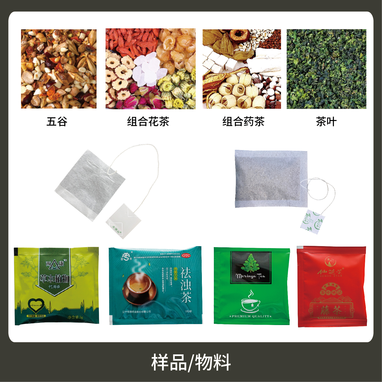 適用于茶葉、藥茶、保健茶草根類等小顆粒物的內(nèi)外袋一次性包裝。
